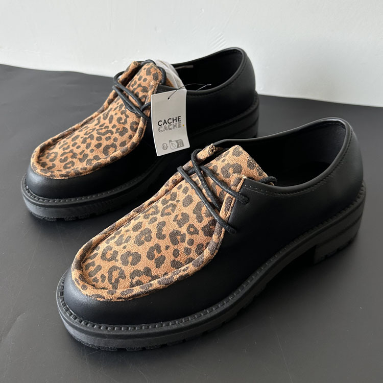 春の新型の丸首のスエードの靴は日常的に1足の豹の紋様の英倫の靴のファッションの女性の靴の対外貿易の卸売りを着ます。