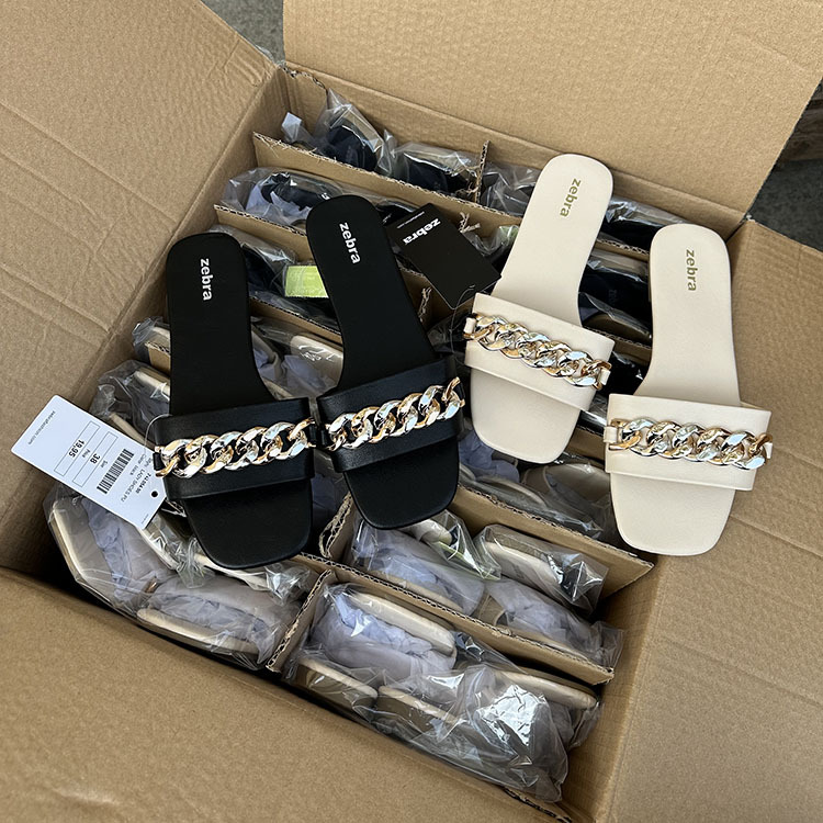 外国貿易の女性のスリッパ2024の一字型の平底のカジュアルな女性のチェーンの大きいサイズの涼しいドラッグ