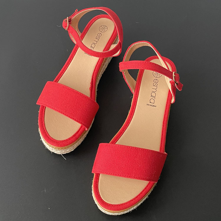 夏の新型タワーボタン一字サンダル付き2024項日常カジュアル女性麻靴対外貿易卸売り