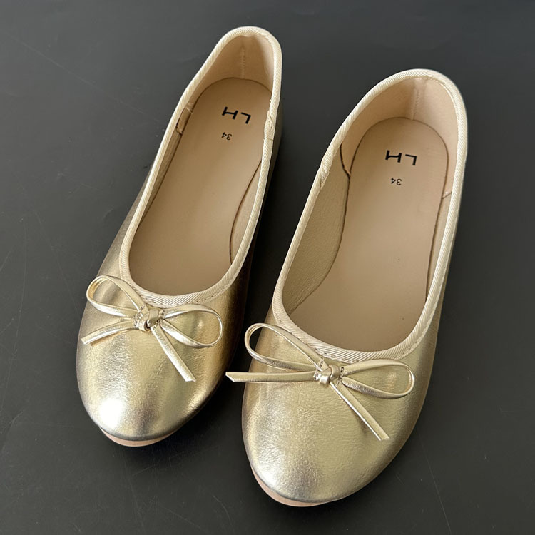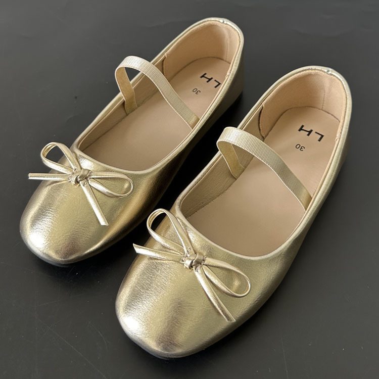 夜の夜の靴2024の新型の浅い口の1足は蝶結びの金色の優しい靴の女性の子供靴の対外貿易の卸売りを漕ぎます。
