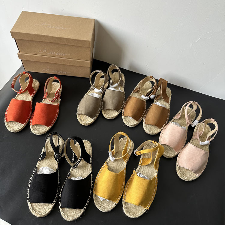 2024年夏の新型の丸い坂とサンダルはカジュアルに一字の麻の底のサンダルの対外貿易の卸売りを着ます。