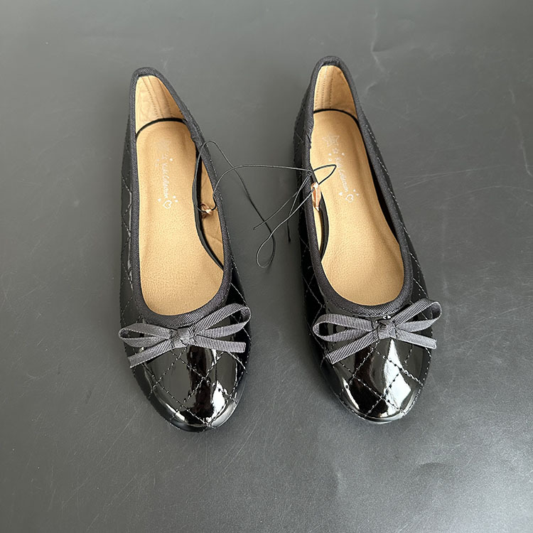 子供の靴の女の子の蝶結びの足は平底の豆のダンスの靴の2024の新型のイギリスのシングルを漕ぎます。