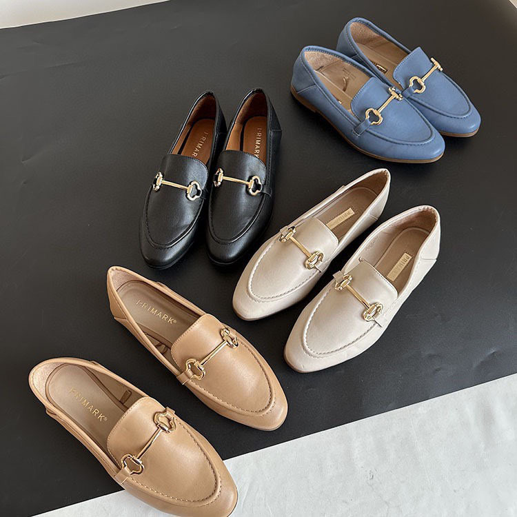 女性の2025新しいファッション英国スタイルのシンプルなバックルミッドマウス快適なフラットシューズ外国貿易英国シングル大きいサイズ