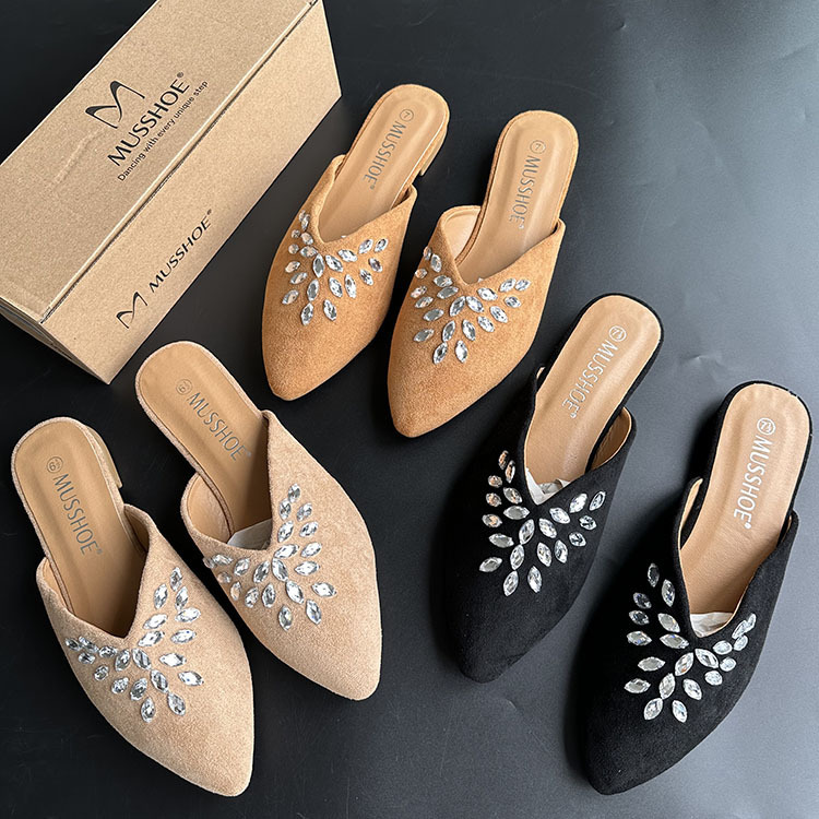 2023夏の包頭半引き女性の新しいドリルファッションの先の靴