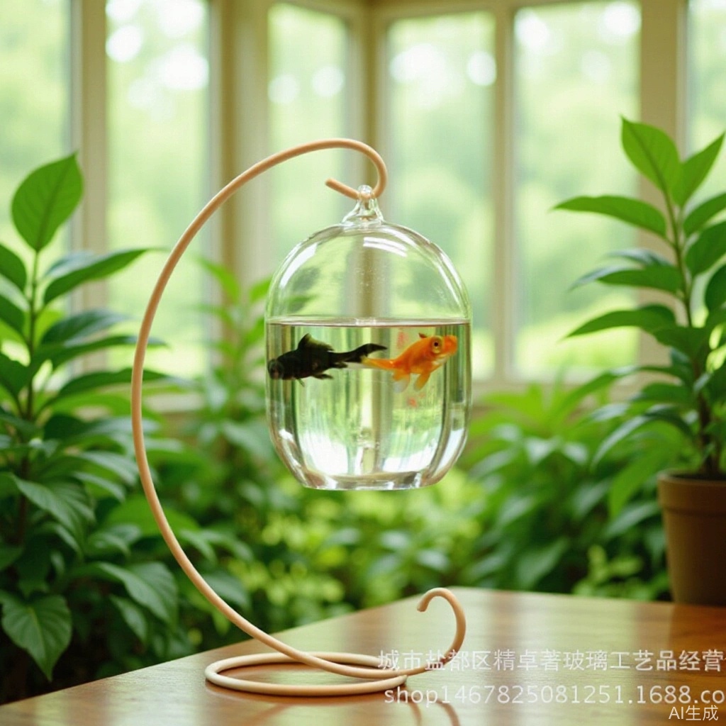 創意吊り下げ鉄芸水培ガラス金魚鉢鉄棚微景観装飾置物家庭装飾品卸売り金魚鉢