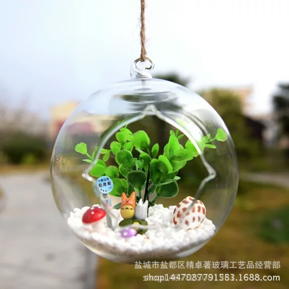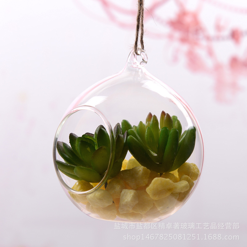 吊り下げガラス花瓶微景観水培花瓶多肉コケ生態造景瓶ガラス工芸品