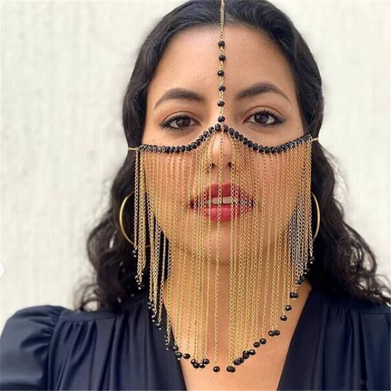 Mw2705欧米フェイシャルマスク水晶宝石ペンダント金属チェーンフリンジマスク頭飾り