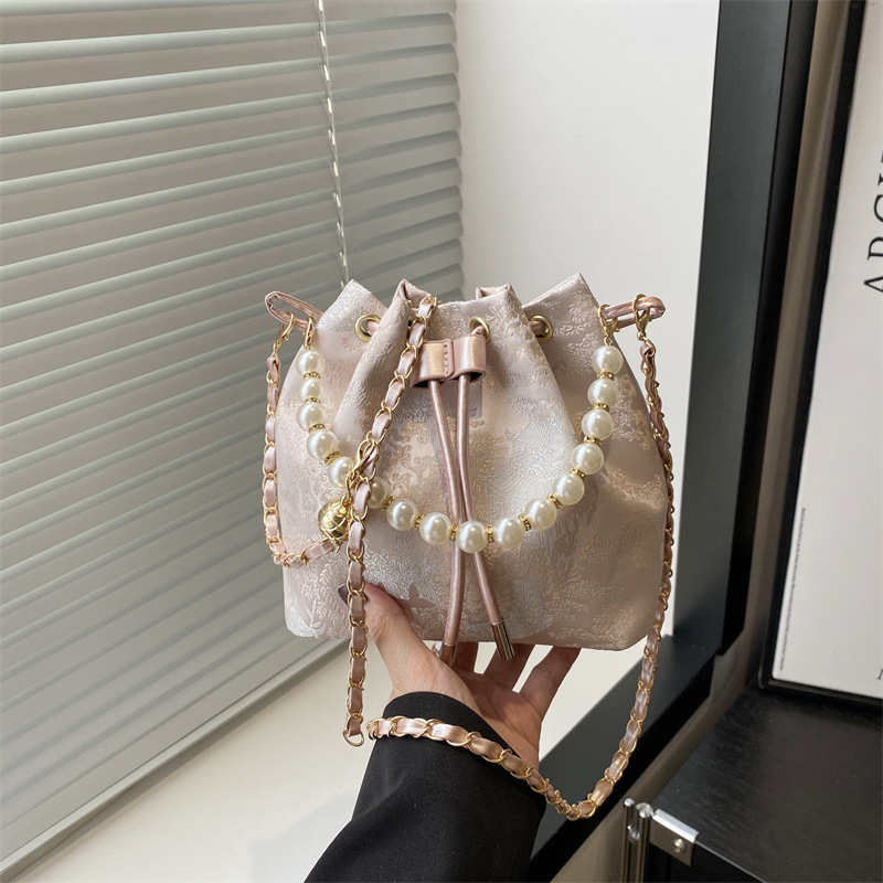 真珠チェーンのバケツを持って女性2025夏の新中国式刺繍シングルバッグ