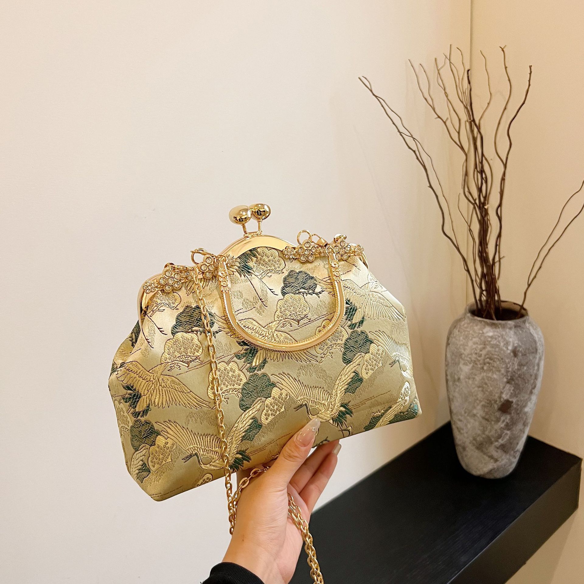 バッグ女性の刺繍ハンドバッグ 2025 新ファッションチェーンショルダーメッセンジャーバッグクリップ口シェルバッグ