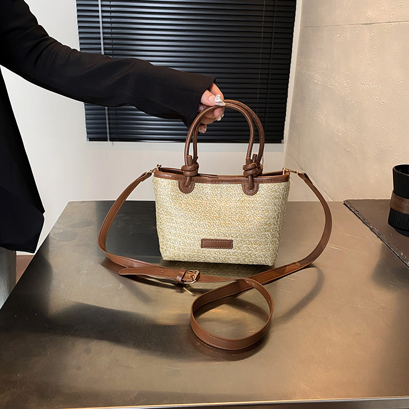 2025新型夏のリゾートビーチ風草編みバッグ手提げショルダーバッグ洋気縄結び野菜かご編みバッグ