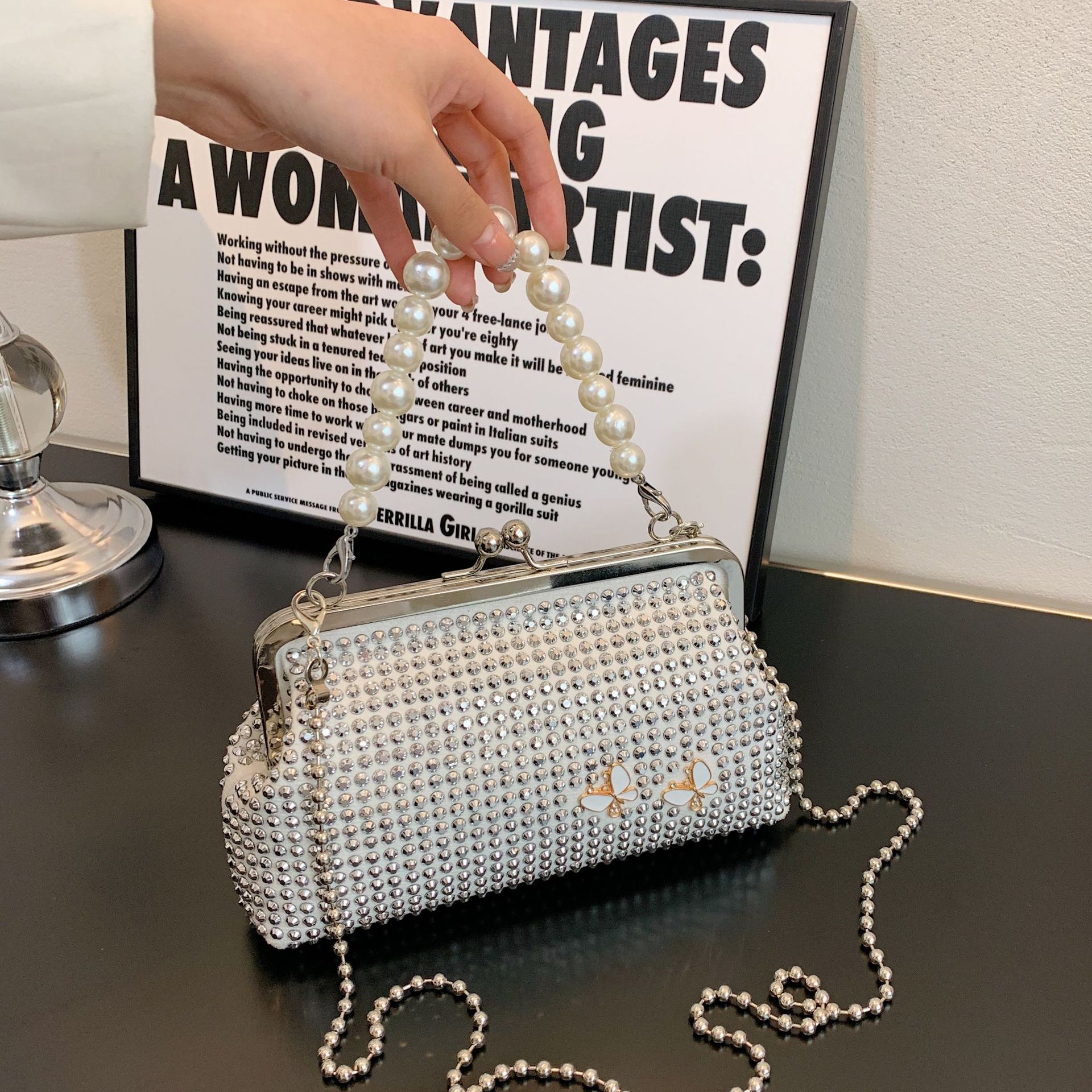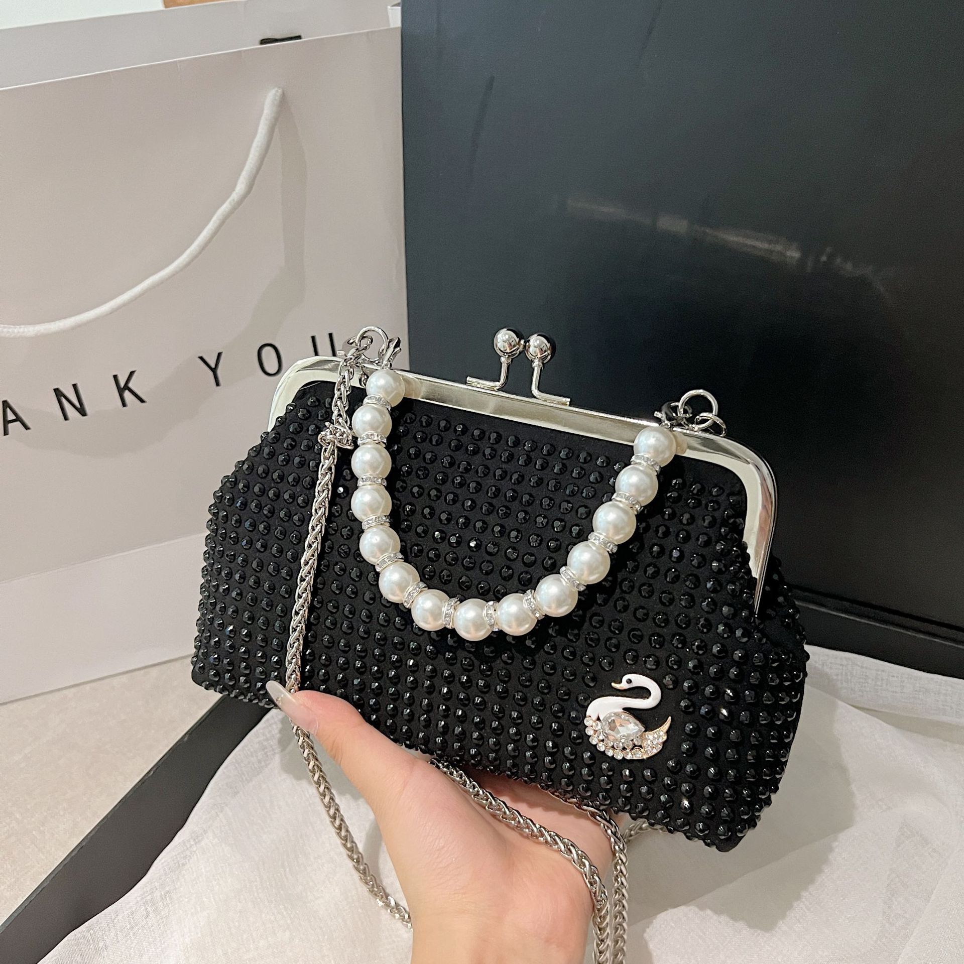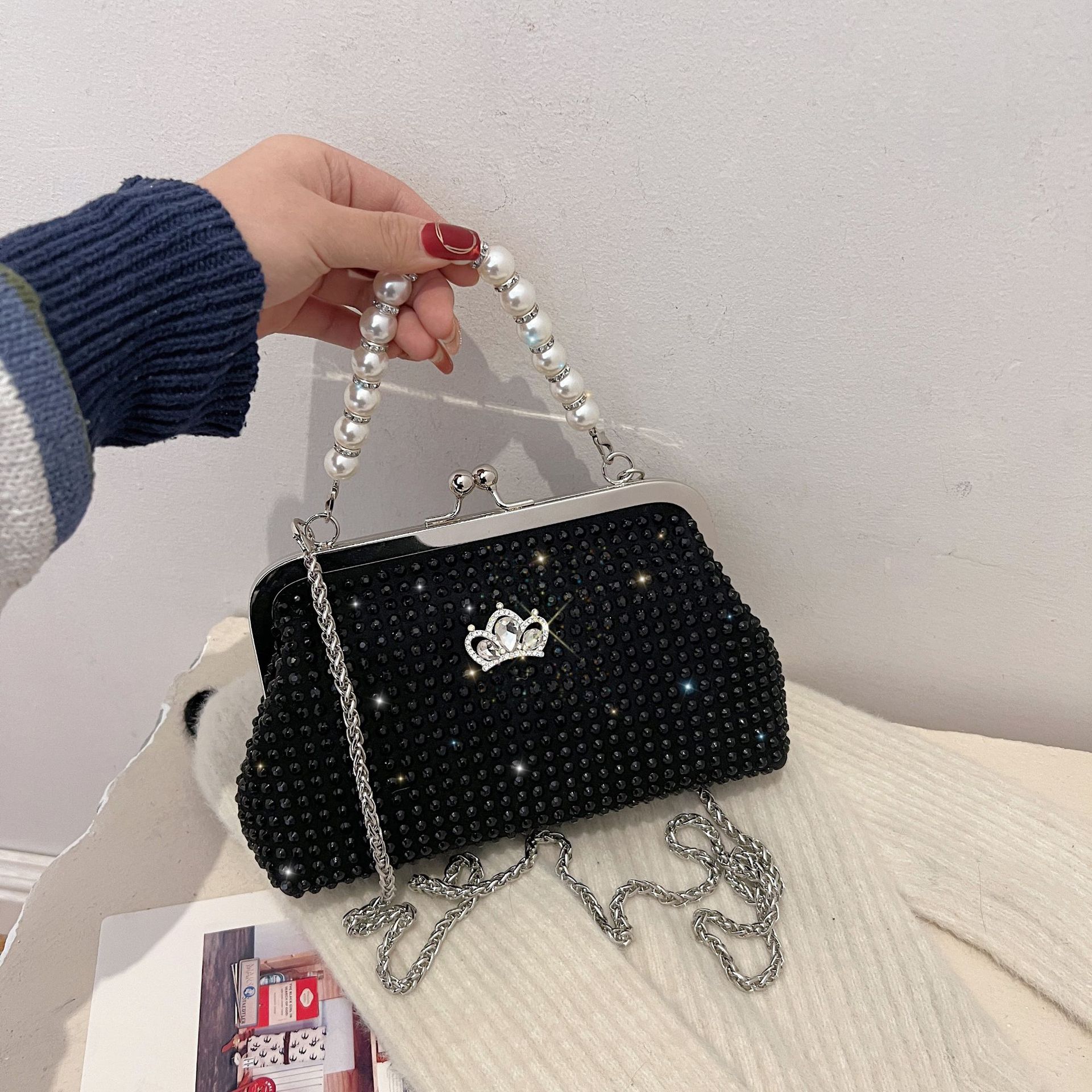 ラインストーンバッグ女性の新 2025 ファッションレトロクリップバックルメッセンジャーバッグ小さなフレグランスパールハンドヘルド女性のバッグ卸売