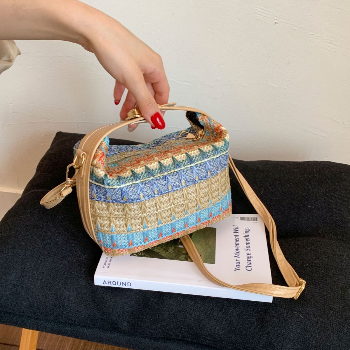 ネットセレブレトロストローバケットバッグクロスボディポータブル新しい小さなバッグカラフルな今年の新しいシンプルなエスニックスタイルバッグ