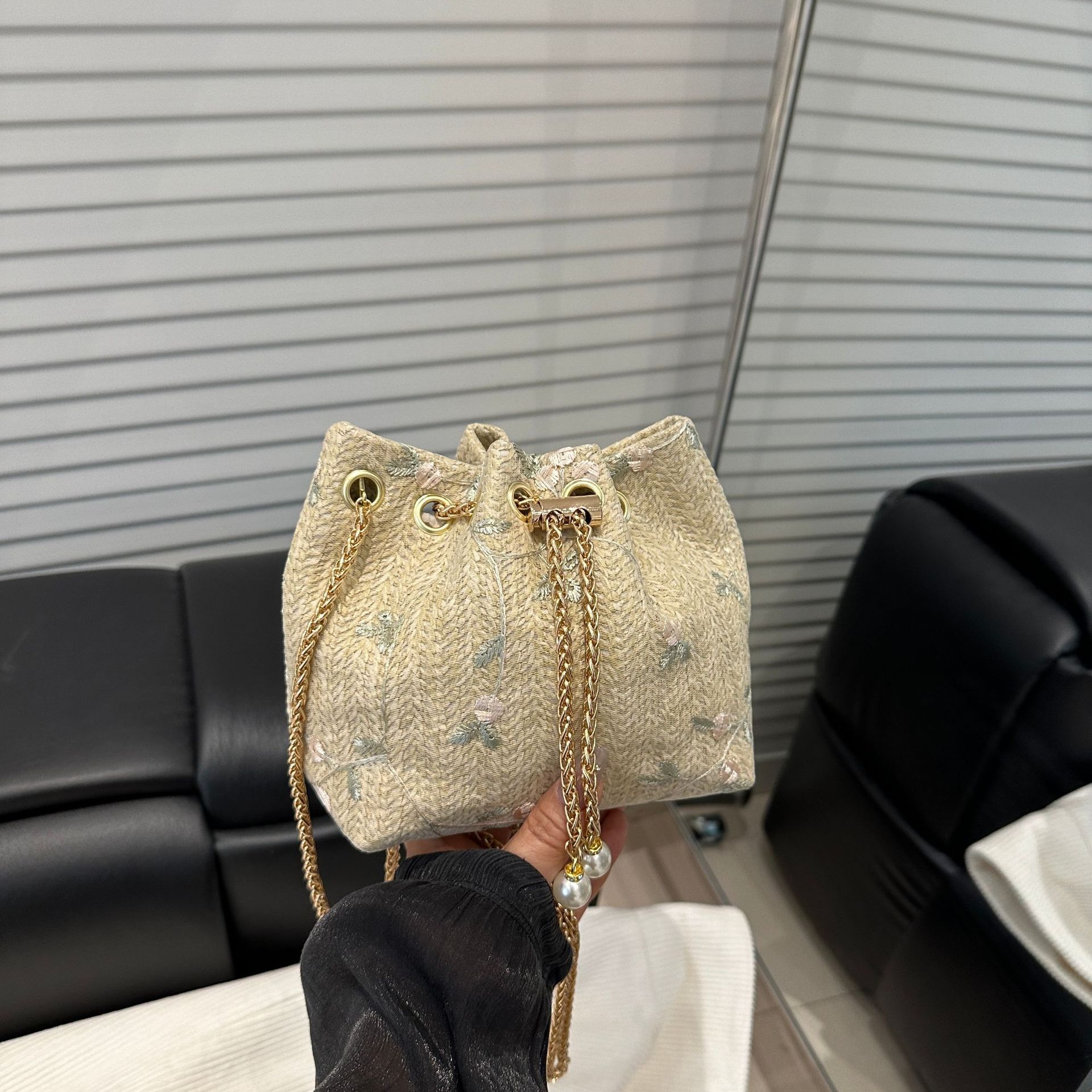 わら織りファッションチェーン巾着バッグ女性のための 2025 新しい多用途韓国スタイルシングルショルダークロスボディバッグトートバッグカジュアルバッグ