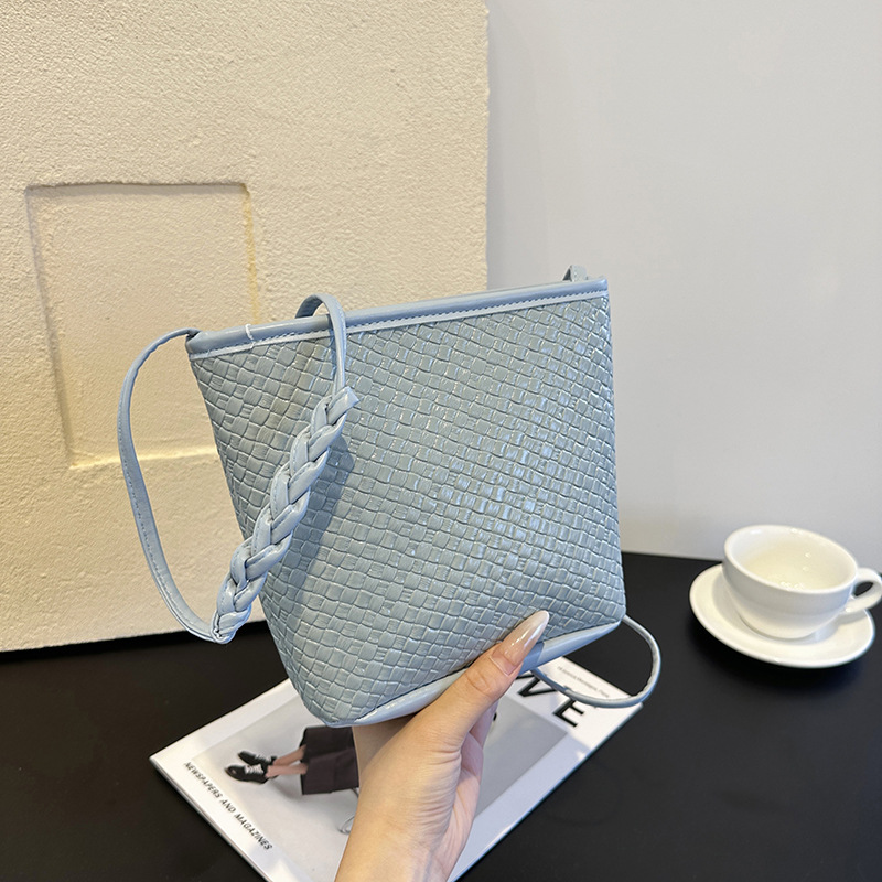 夏のファッションショルダースモールバッグ女性のための 2025 新しいシンプルな織りパターンバケットバッグ多用途クロスボディ携帯電話バッグ