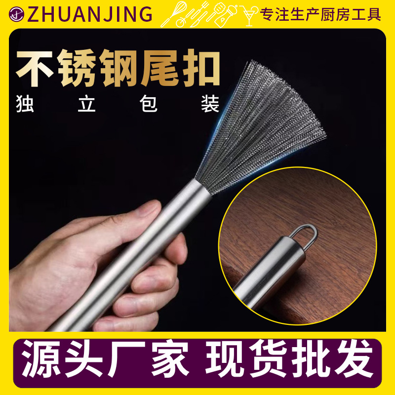 ステンレス製の長柄鍋ブラシ、キッチン用、鍋を傷めない、洗浄、除染、吊り下げ式、延長スチールブラシヘッド、鍋洗いツール
