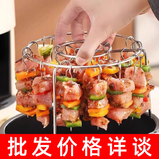 エアフライヤー バーベキューグリル シャワーラック バーベキューグリル ラウンド吊り下げグリルスタンド 垂直肉串ラック 卸売グリルアクセサリー