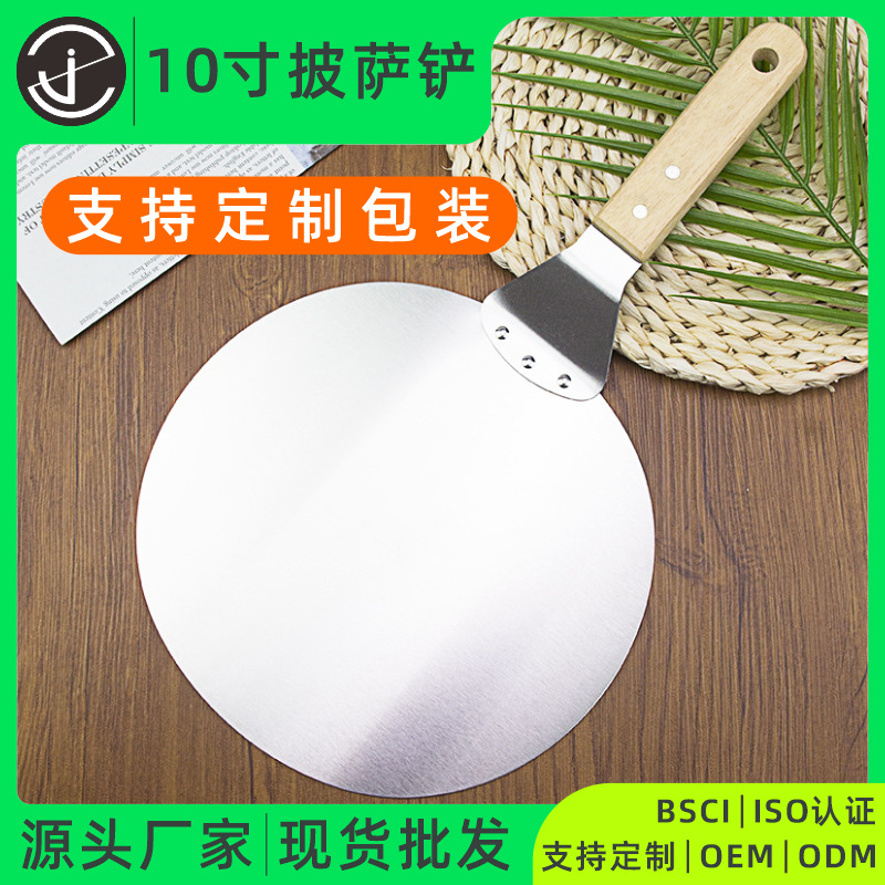 クロスボーダー 10inch ピザシャベル木製ハンドルステンレス鋼ケーキシャベルラウンドベーキングツール転送シャベルメーカー卸売パンケーキ