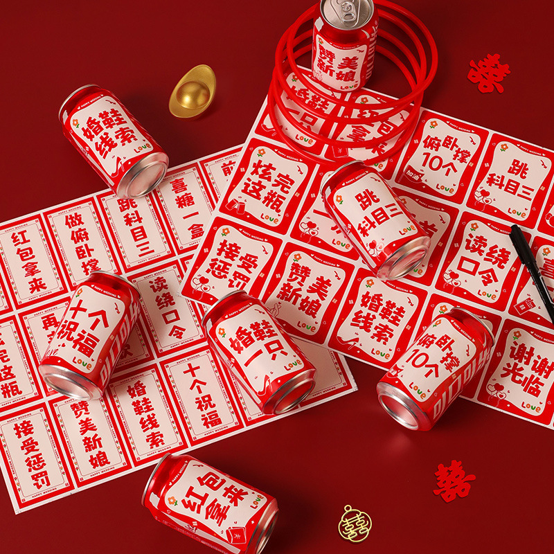 ウェディングゲーム、結婚式の小道具、ブライズメイドのドアブロックゲーム小道具、ウェディングクリエイティブコーラステッカー、装飾リングおもちゃ