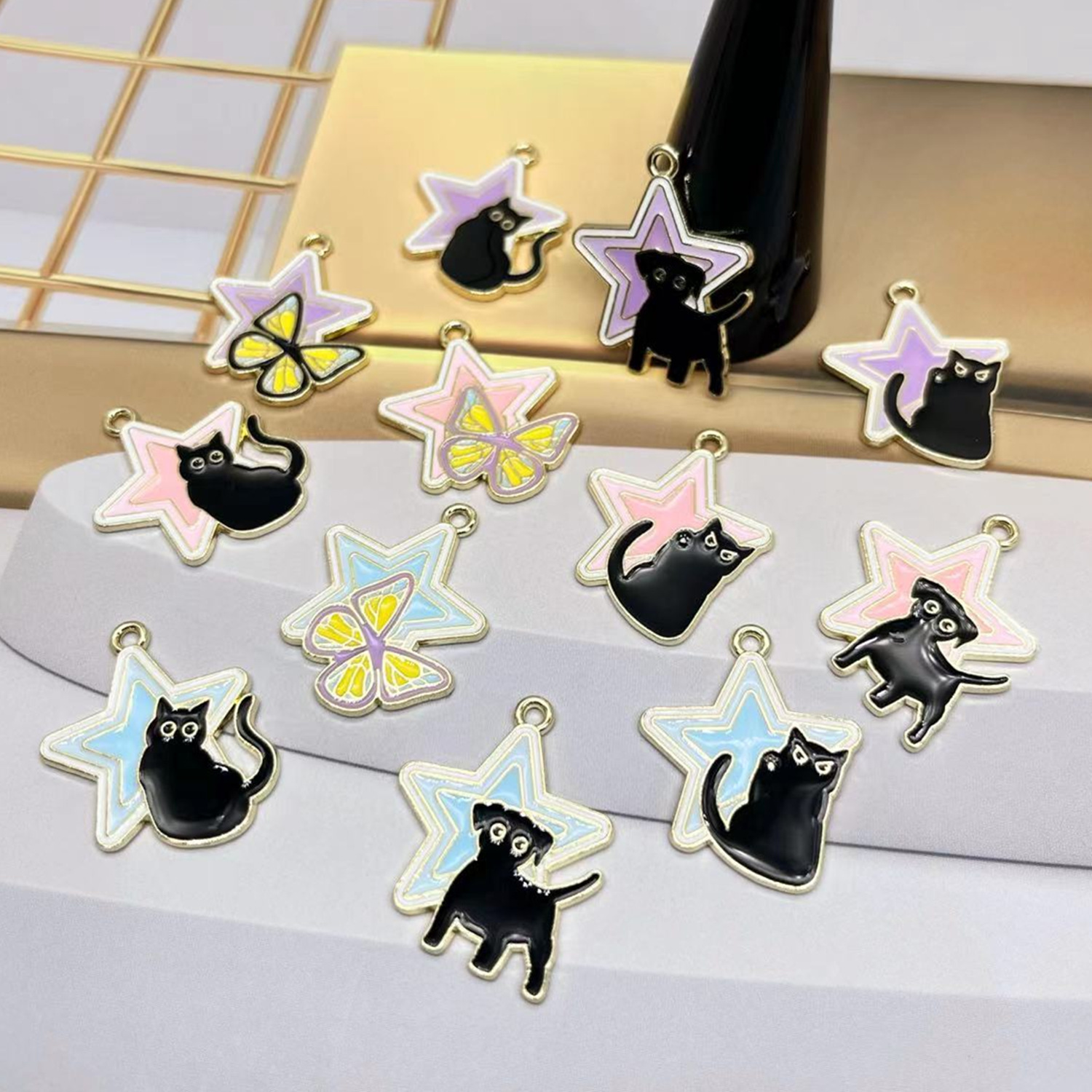 かわいい子猫子犬カラー星蝶滴油合金diyアクセサリー子供バッグストラップ卸売