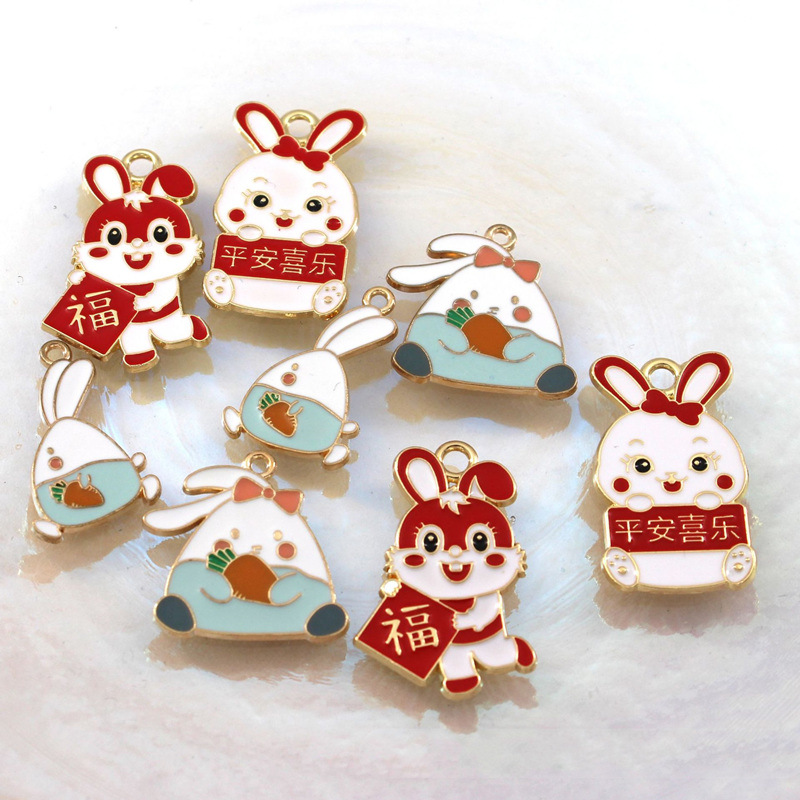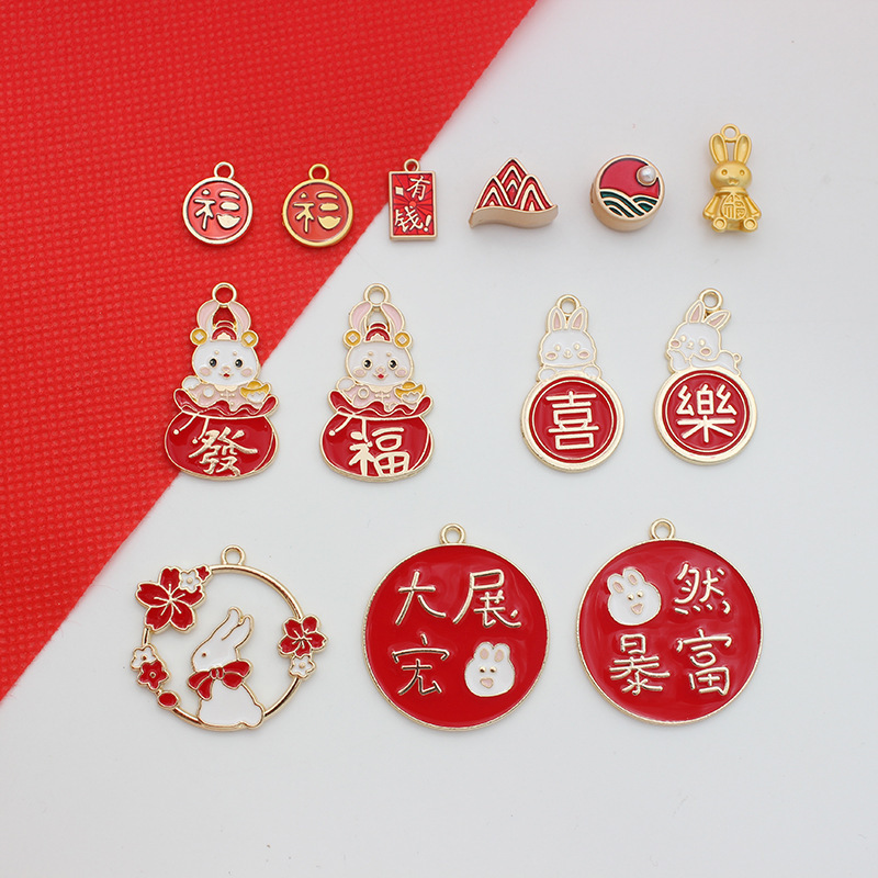 滴油合金diy材料アクセサリーアクセサリー新年兎年春節財神爺錦鯉キーホルダーペンダント