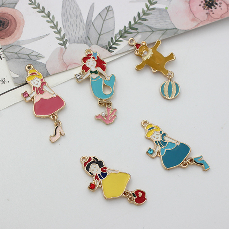 Diyジュエリーアクセサリー漫画マーメイド白雪姫滴油合金ペンダントアニメネックレス耳饰りペンダント