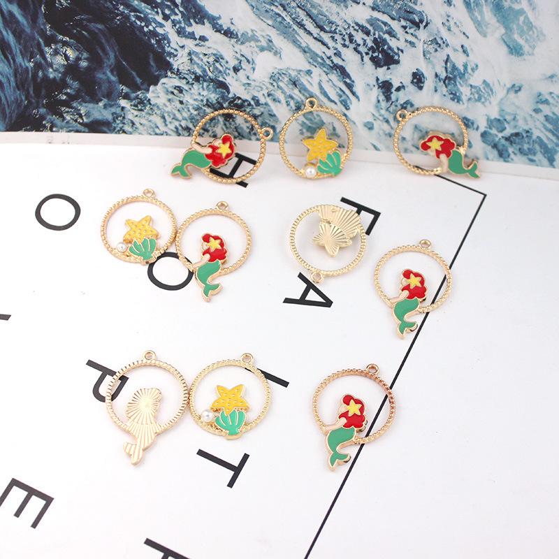 Diyアクセサリーアクセサリー漫画海洋風マーメイド滴油合金ペンダントストラップキーホルダー材料小さなストラップ