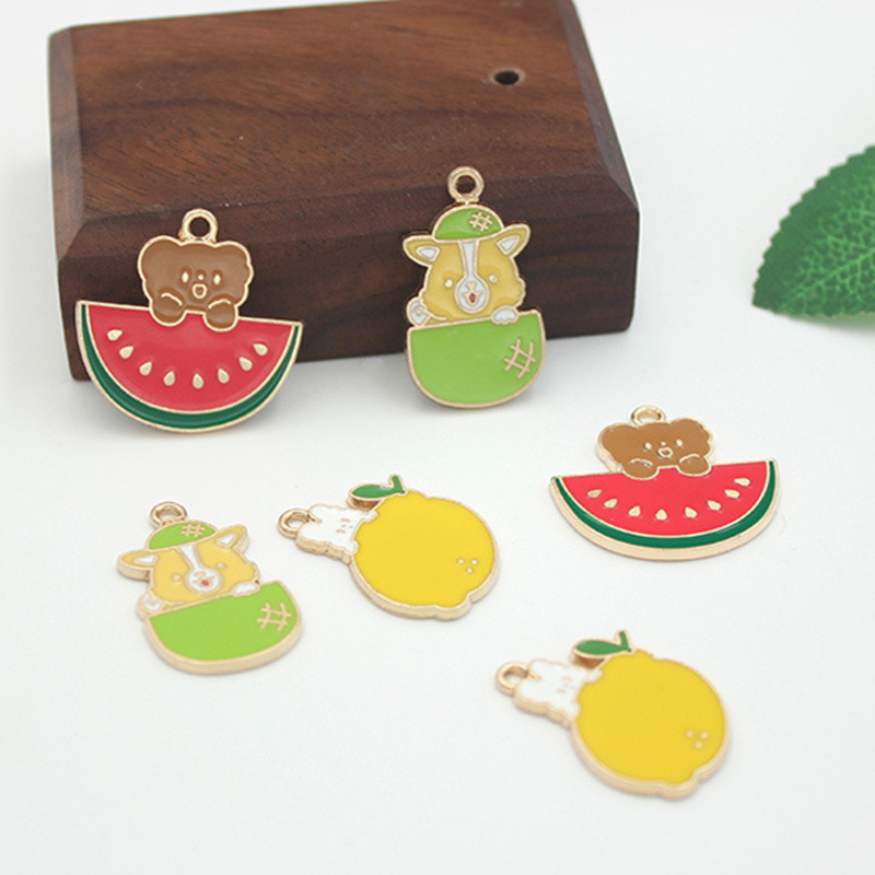 Diy滴油合金部品アニメ動物果物スイカアクセサリー小ペンダントキーホルダーペンダント部品
