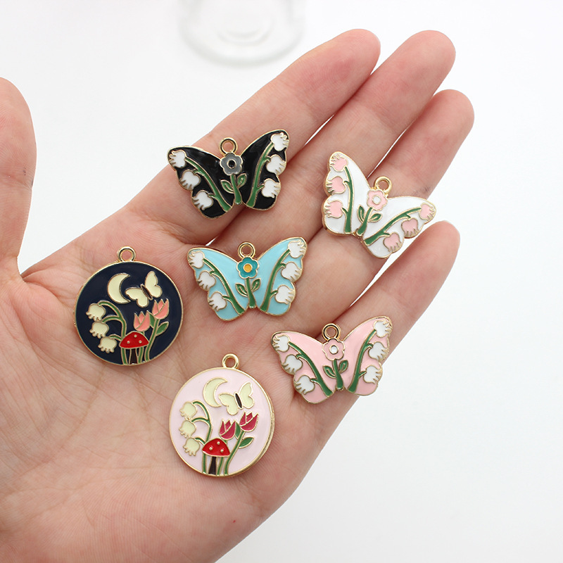 Diyアクセサリーアクセサリーカラー滴油合金風鈴花丸いブランドペンダント花蝶ストラップキーホルダーアクセサリー