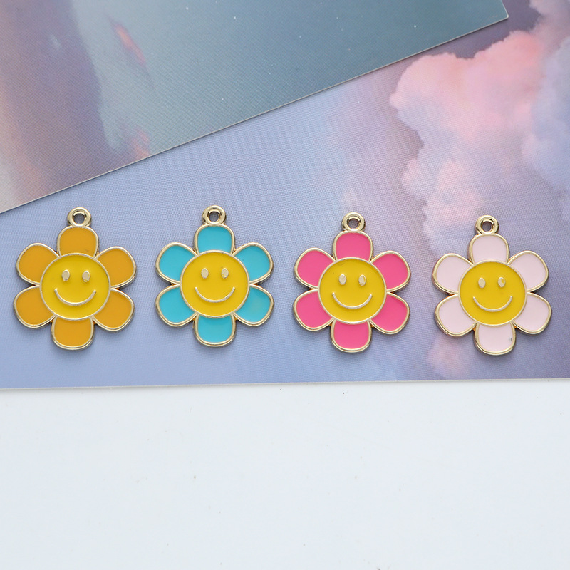 Diyアクセサリー部品材料k金滴油合金ペンダントイヤリングキーホルダーペンダント笑顔六弁花太陽花