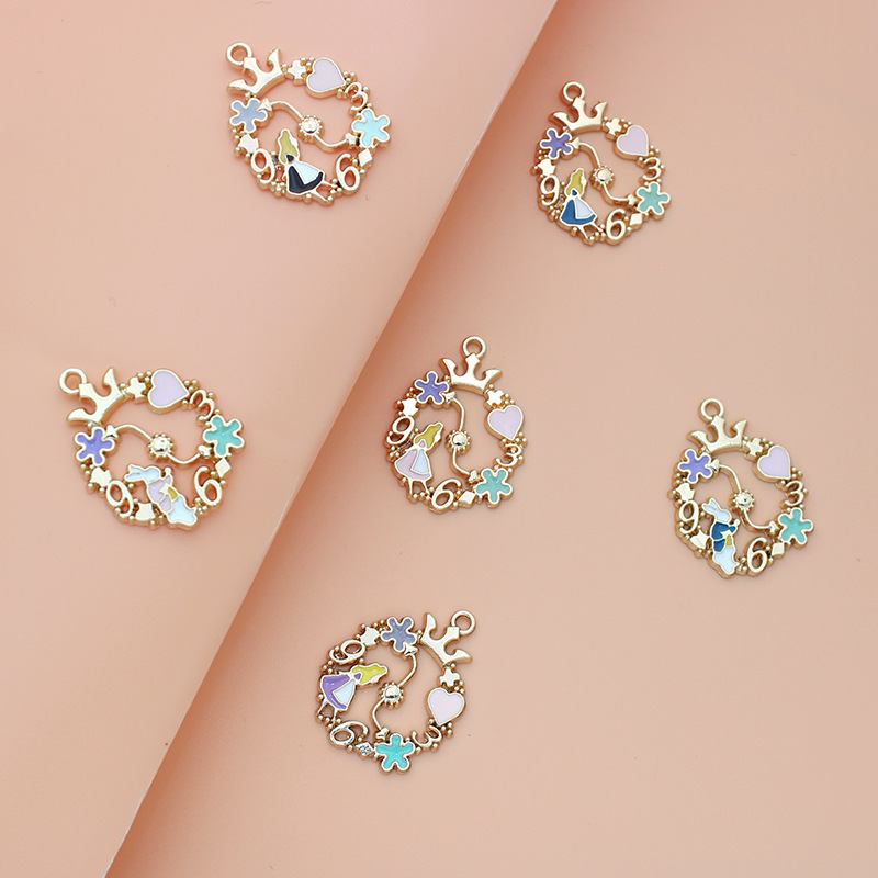 Diyの合金の滴の油はクラウンの丸い花輪の時計の女の子のイヤリングのネックレスのペンダントの女性のペンダントの卸売りを配合します。
