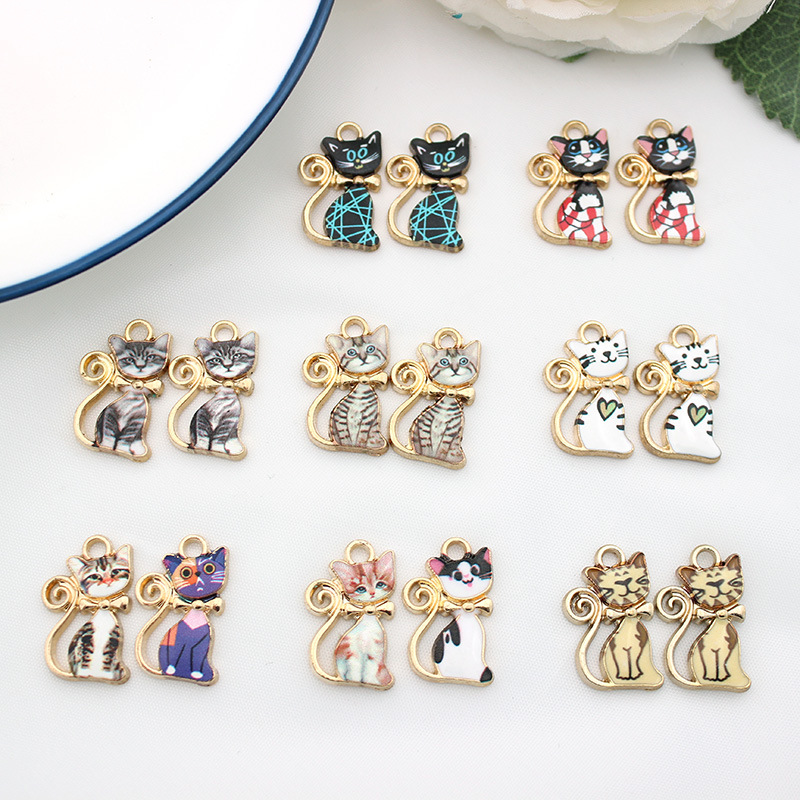 Diy部品滴油合金プリント猫のブレスレットの髪飾りイヤリングのペンダントのキーホルダーの携帯ケースのペンダント
