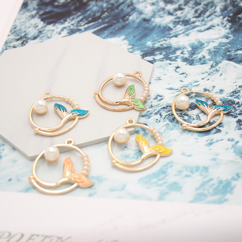 カラー真珠の魚の尾のネックレスdiyアクセサリーの滴油合金のペンダントのイヤリングのキーホルダーのペンダントの部品の材料