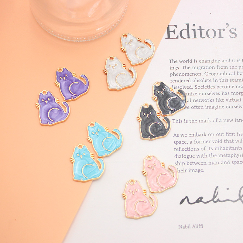 Diyアクセサリーの合金の真珠の光のカラーの油の猫のペンダントのキーホルダーの携帯電話の携帯電話のブレスレットのアクセサリーの卸売り