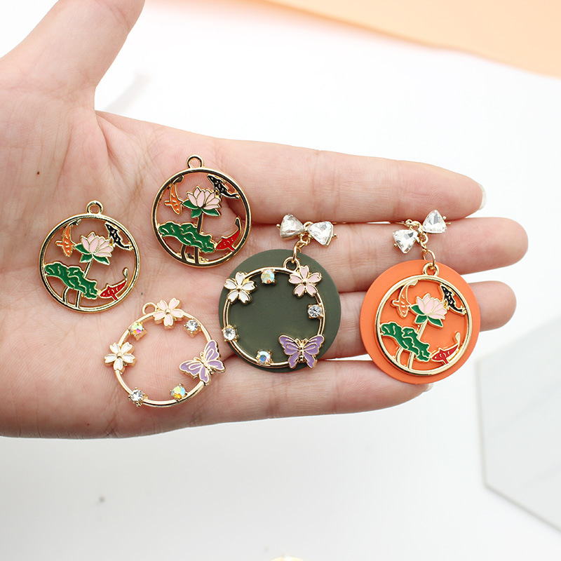 塗装円牌滴合金花輪ハスの花蝶アクセサリーdiyアクセサリー耳ネックレスキーホルダー卸売り