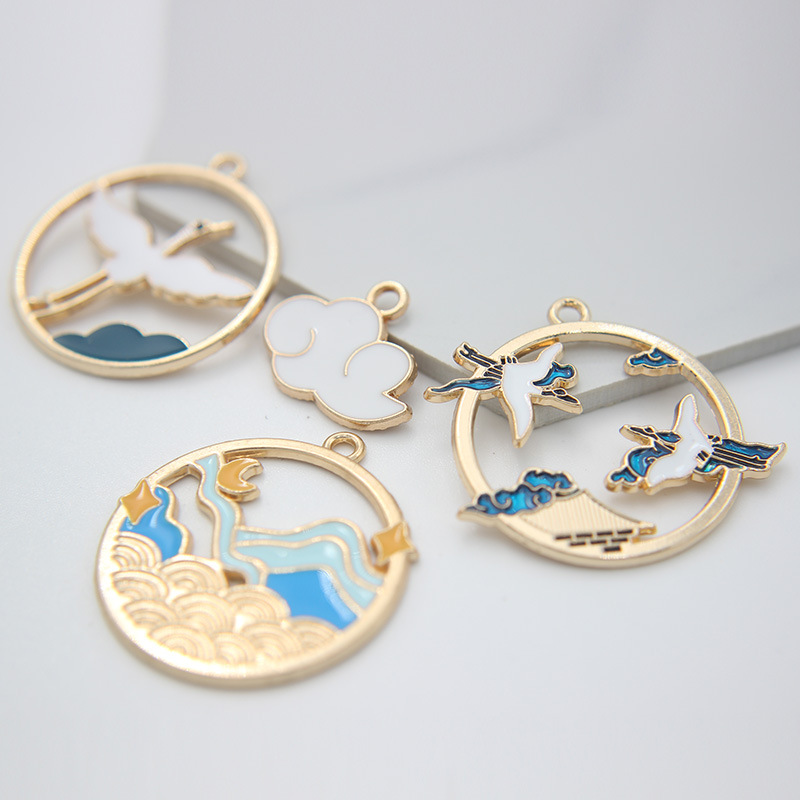 ツル鶴飛鶴滴油合金イヤリングネックレスアクセサリー雲輪ペンダントdiy中国風山水アクセサリーアクセサリー