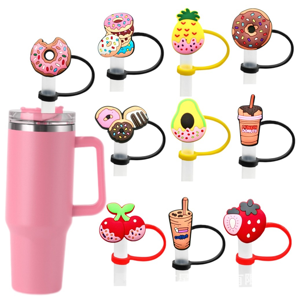ドーナツいちごクリエイティブストローセットストローキャップ防塵プラグかわいい漫画ストロー装飾セットスポット卸売り