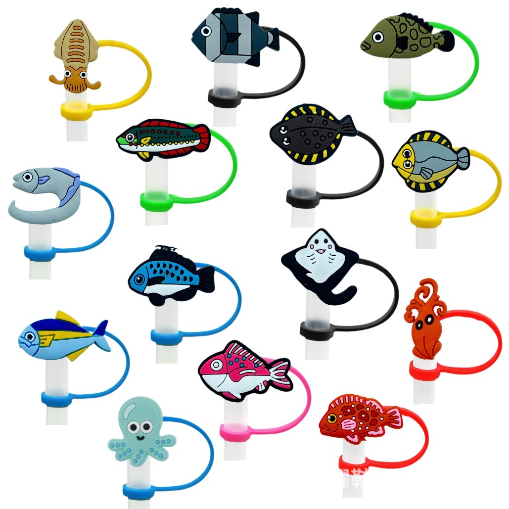 海洋小魚ストローキャップクリエイティブカップストロー防塵プラグ8-10mmストローセット現物卸売りクロスボーダー