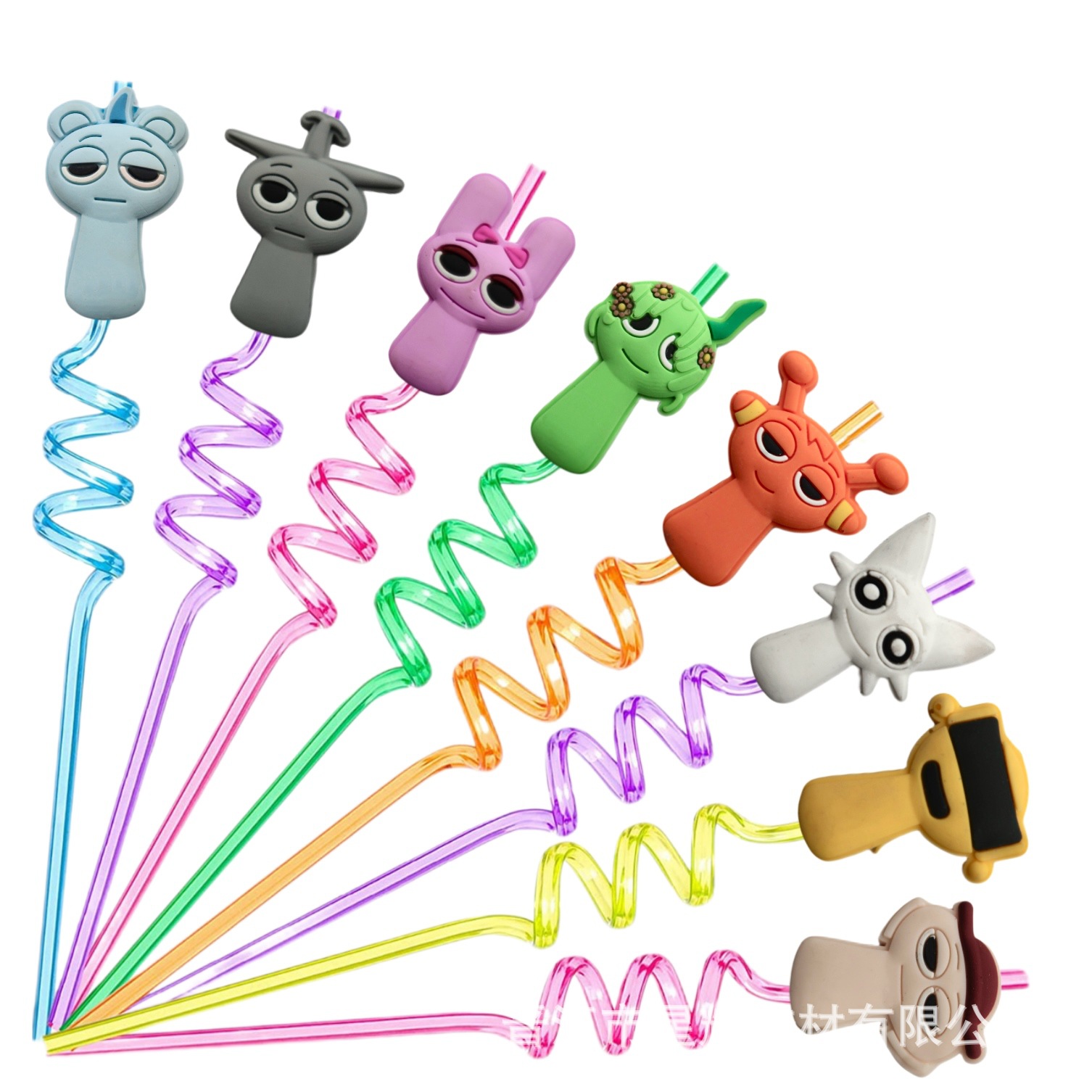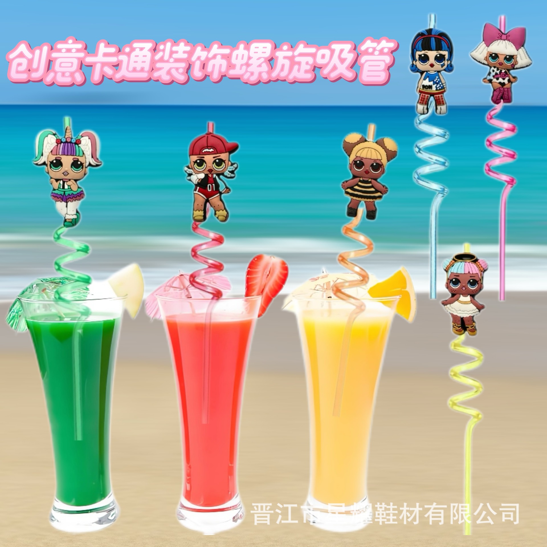 新品サプライズ人形シリーズ装飾スパイラルストローパーティービーチカラーストロー装飾再使用可能