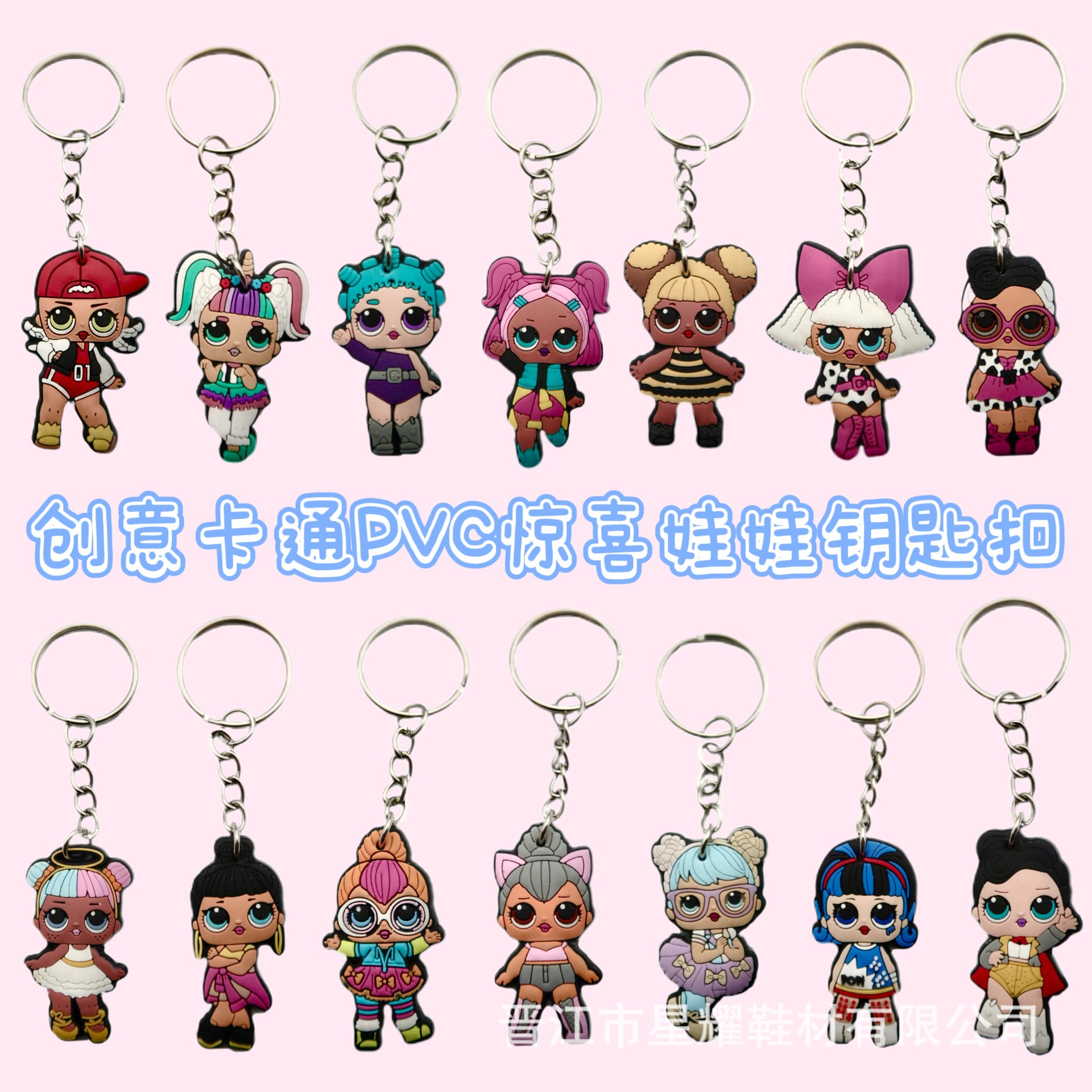 新しいサプライズドールPVCキーホルダー、クリエイティブなバッグや文房具ボックスの飾り、キーリングアクセサリー