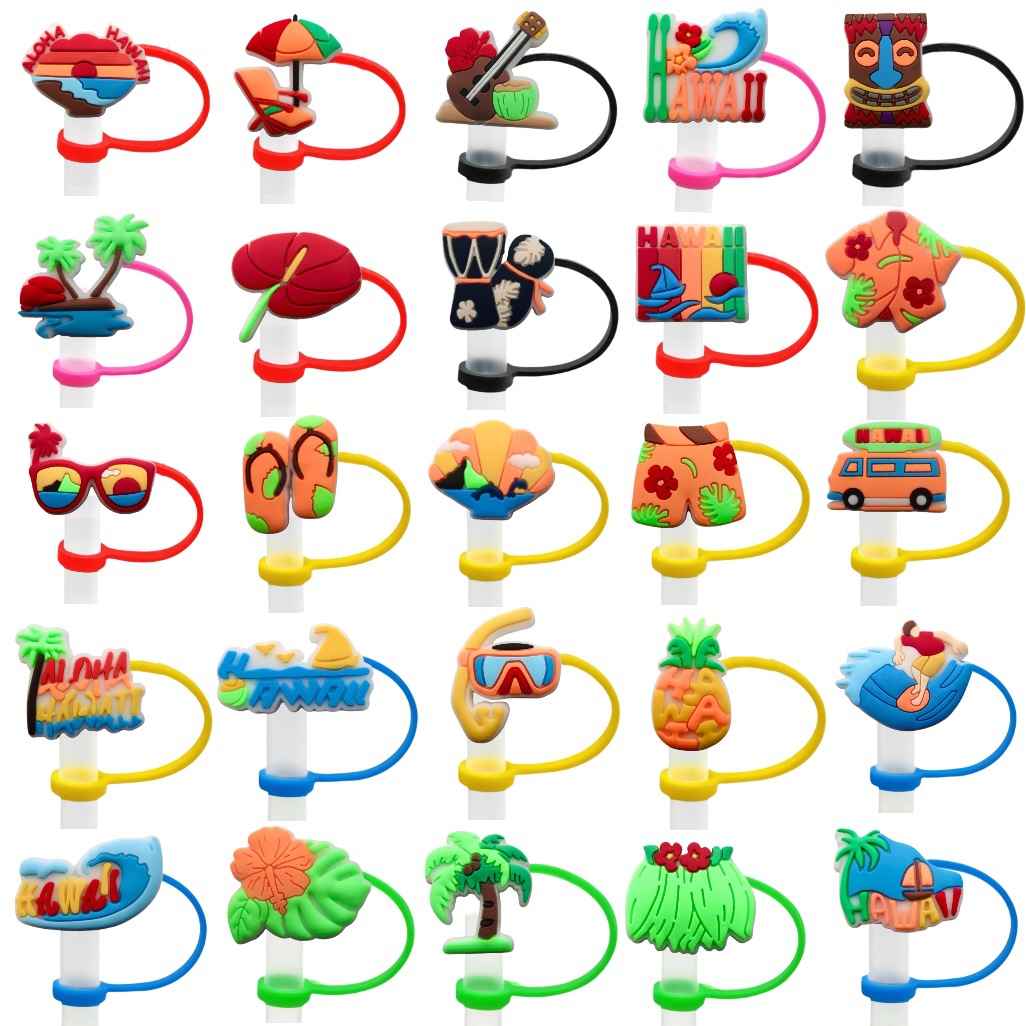 新しいハワイアンテーマストローキャップストロー防塵カバー diy 装飾アクセサリーストローカバーシリコン防塵プラグ
