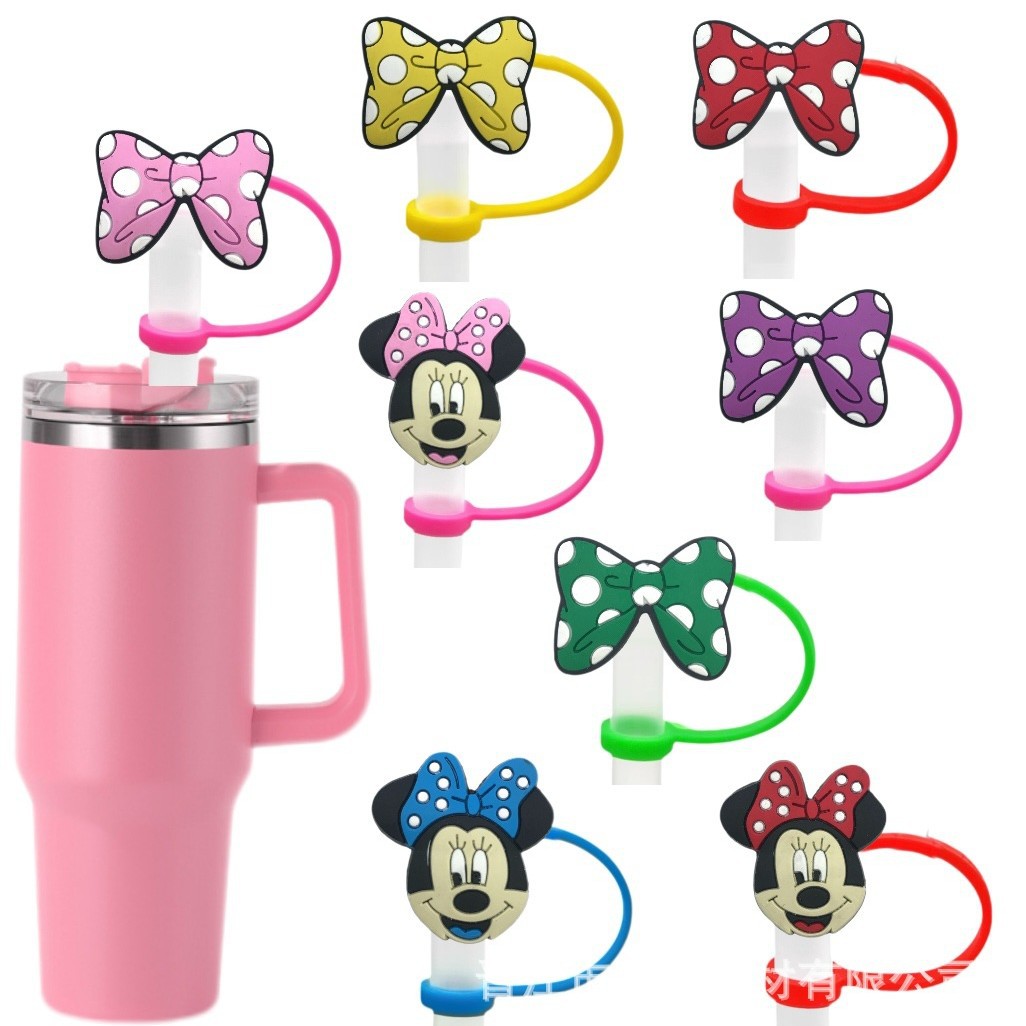 ミッキー蝶結びストローカバーストローキャップシリコン防塵プラグかわいいアニメパーティーストロー装飾スポット卸売り
