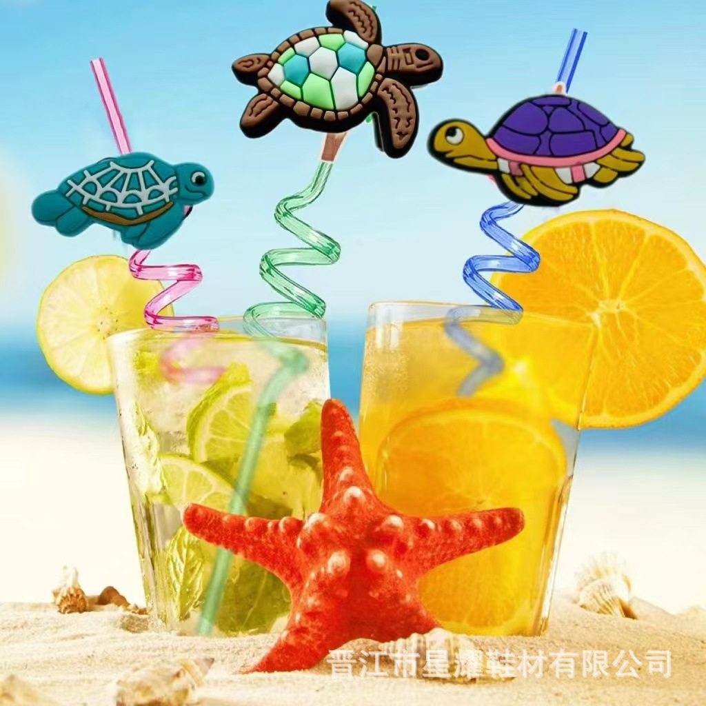 クロスボーダー海洋シリーズパーティーストロー漫画装飾ストロー再使用可能なプラスチックストロー卸売り