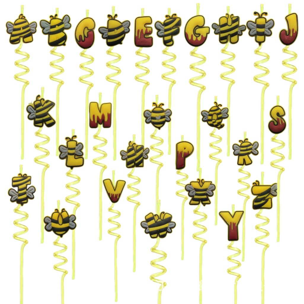 新しいハチのアルファベットのシリーズの形の螺旋のストローの漫画の誕生日のパーティーのストローの装飾の現物の卸売り