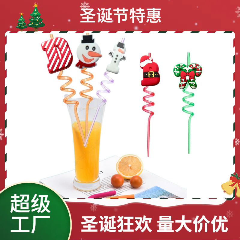 スポットPET硬質スパイラルストローアルファベットクリスマス装飾ドリンクストロー水洗い可能ハードチューブクロスボーダー卸売
