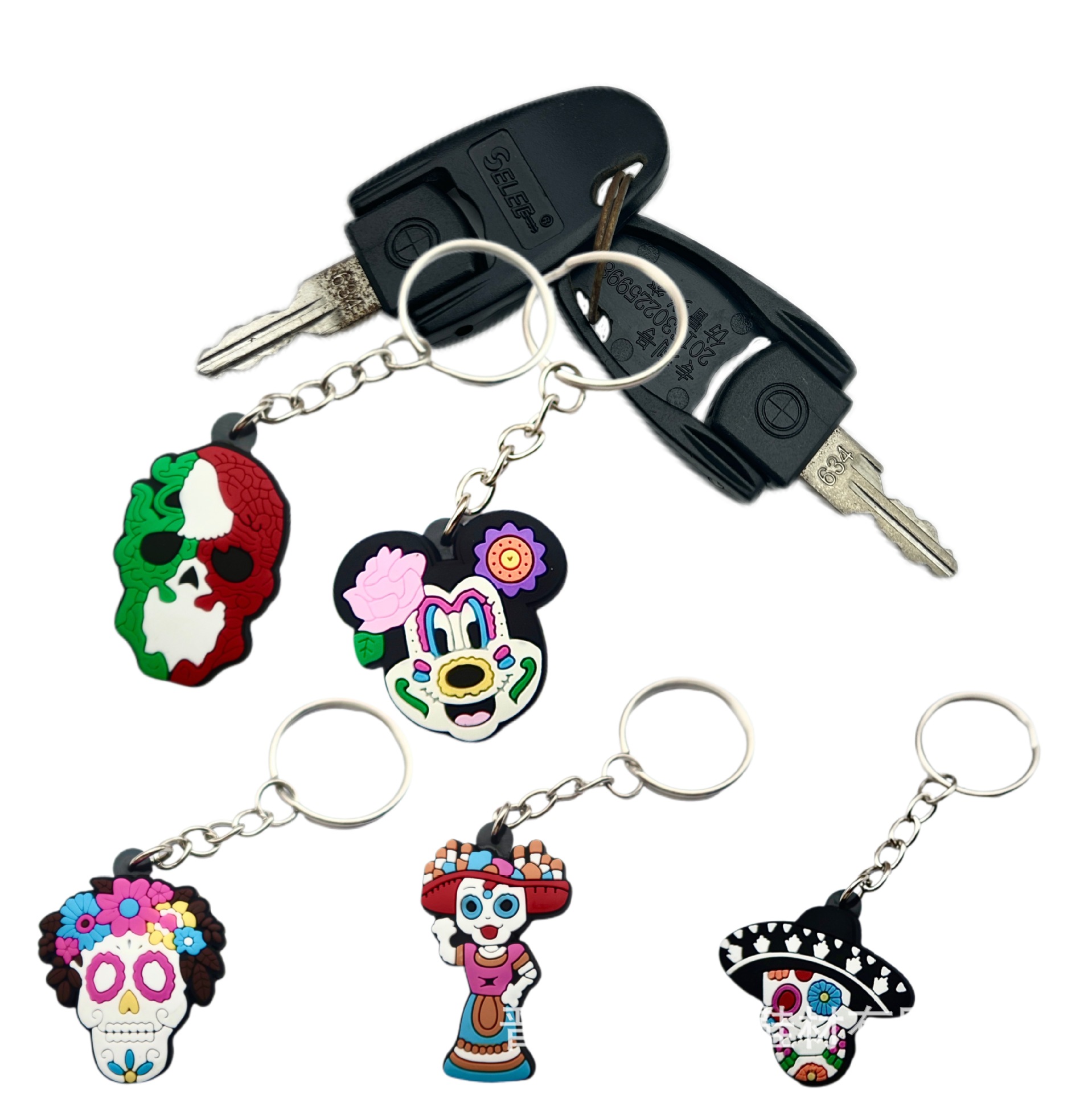 国境を越えたハロウィーンの柔らかいゴムのキーホルダーがかわいいins漫画のバッグにアクセサリーのペンダントのキーリングの小さなプレゼントの現物がついている