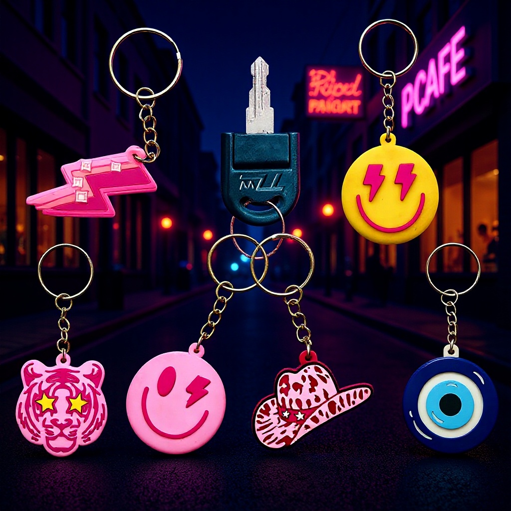 漫画笑顔キーホルダーdiy部品バッグアクセサリーpvcソフトラバーアクセサリー国境を越えた