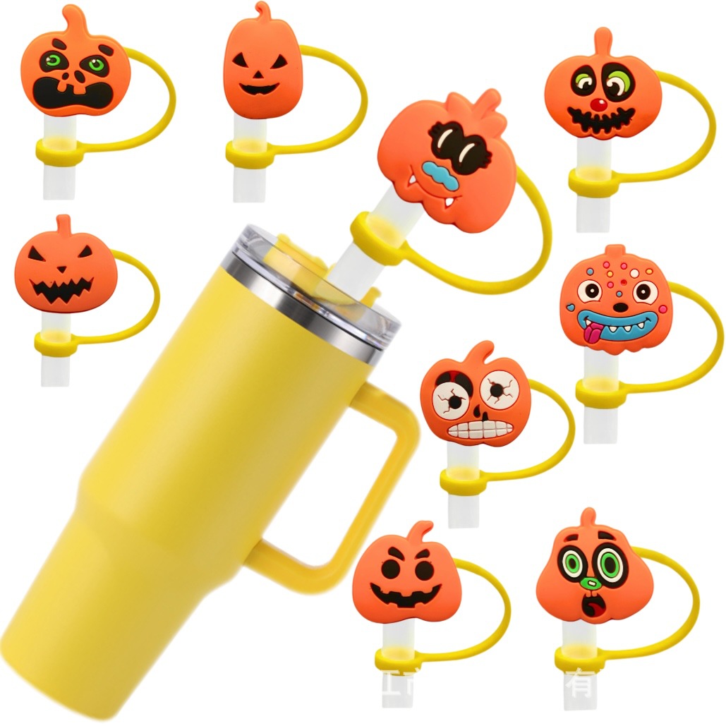 新型ハロウィーンかぼちゃストローカバーコップ防塵ストローキャップシリコン防塵ストローストローストロー装飾部品現物