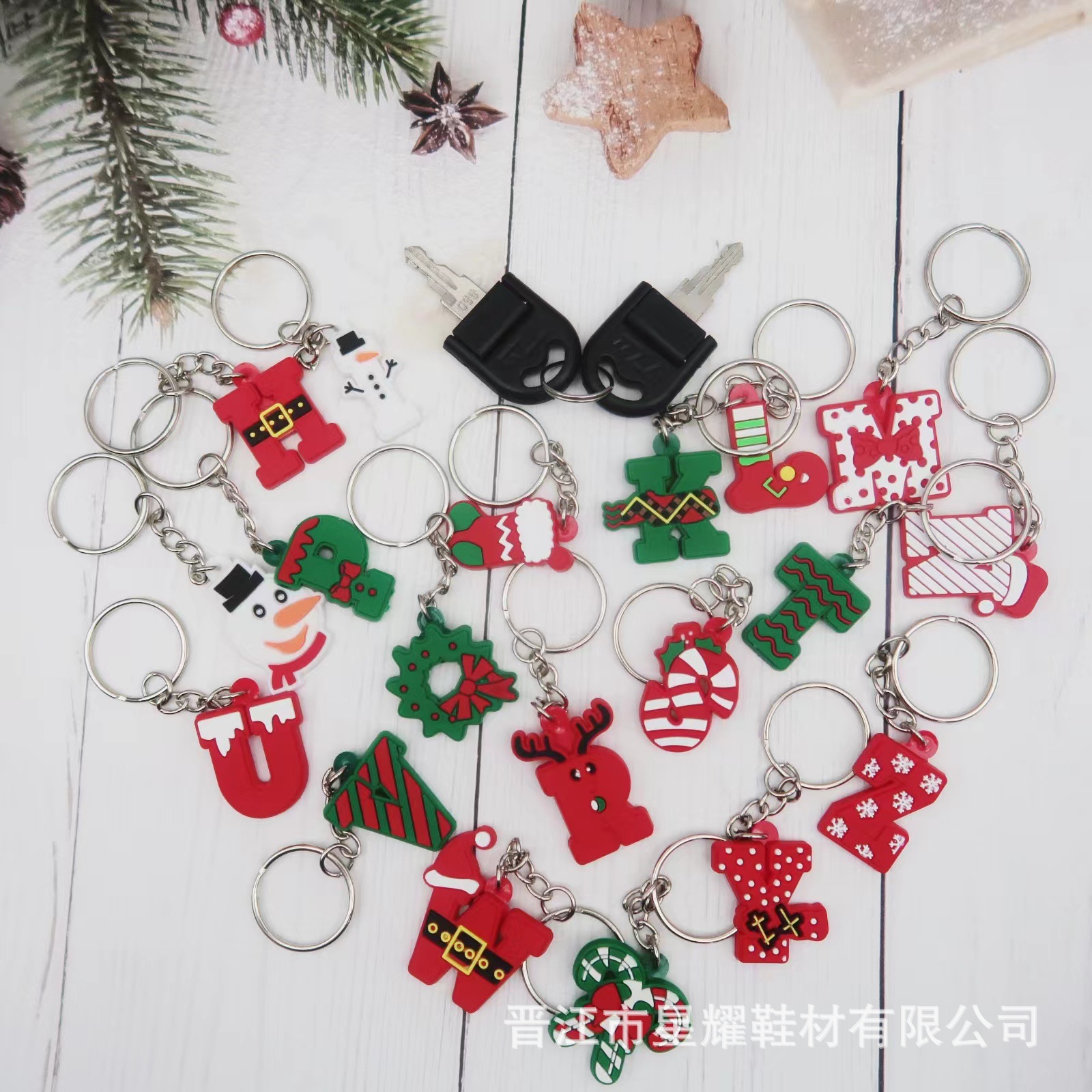 新しい漫画のクリスマスのアルファベットのキーホルダーは卸売りのカバンのペンダントの小さい贈り物のPVCの柔らかいゴムのキーホルダーを飾ります。