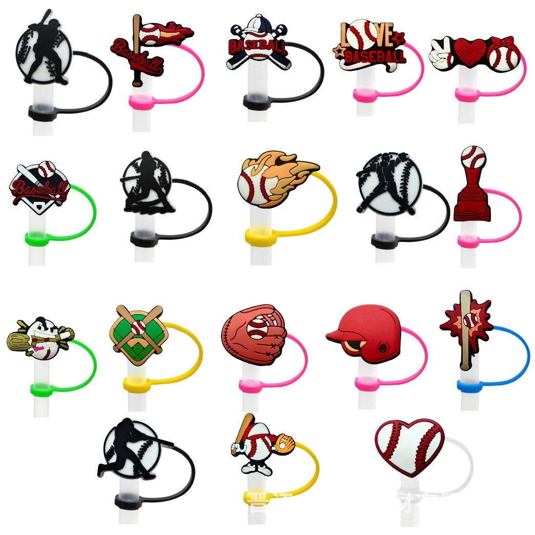 野球食品級シリカゲルストローカバー防塵プラグ防塵キャップ創意アニメスポーツシリーズソフトストローキャップ