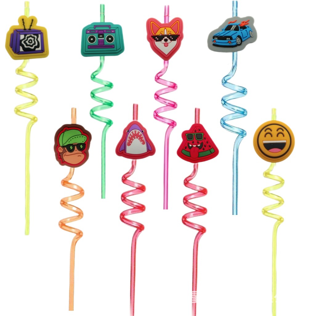 新しい漫画かわいいスパイラルストローパーティー诞生日装饰ストロークリエイティブ趣味ストロースポット卸売